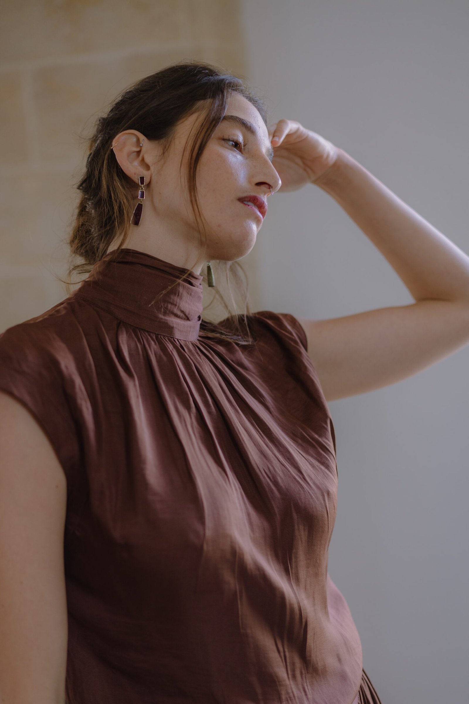 למה את תתאהבי בה? הבד שלנו מתאפיין בטקסטורה ייחודית המזכירה משי – הוא דק, נושם ומתקמט בחינניות שמוסיפה עומק למראה.