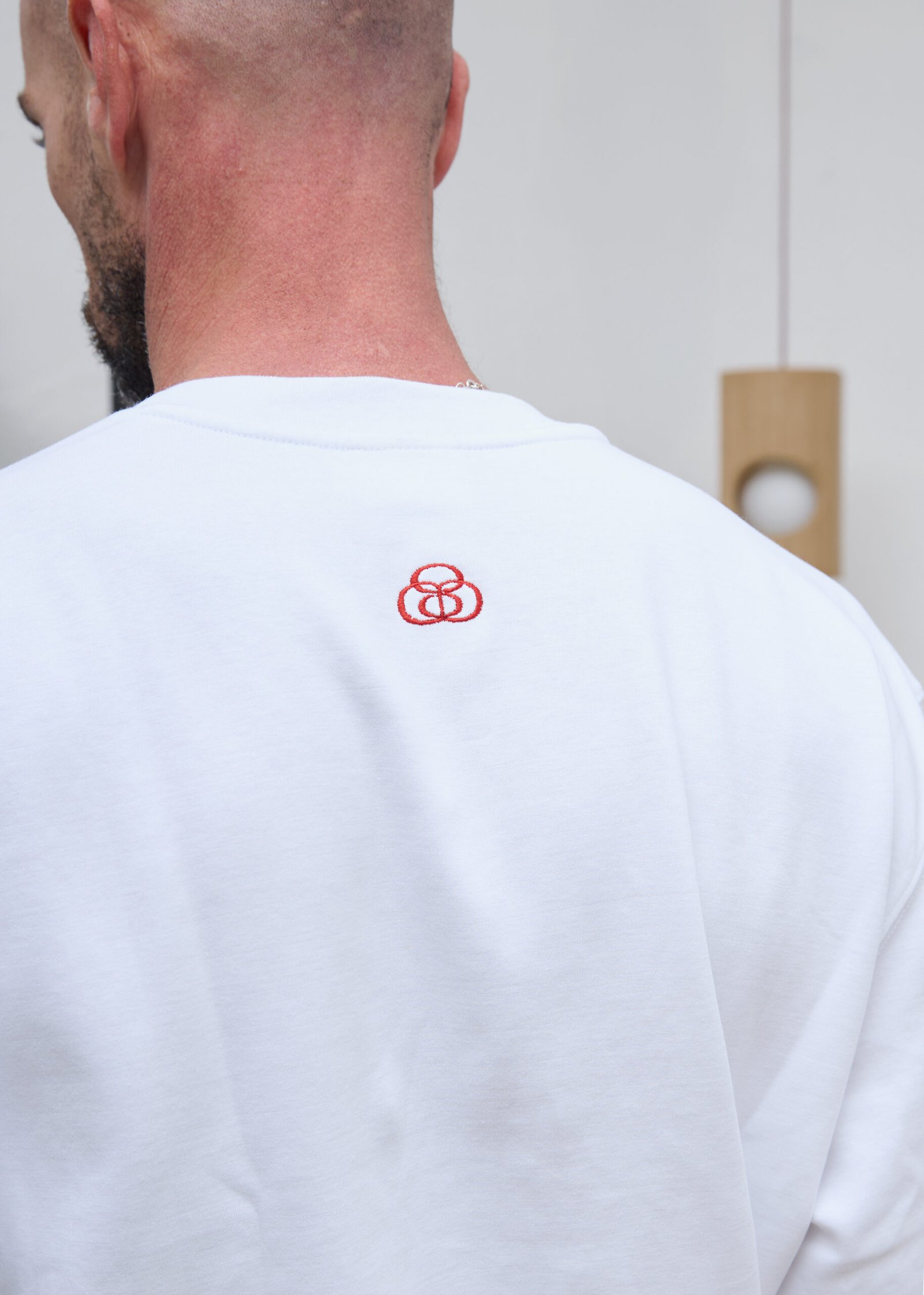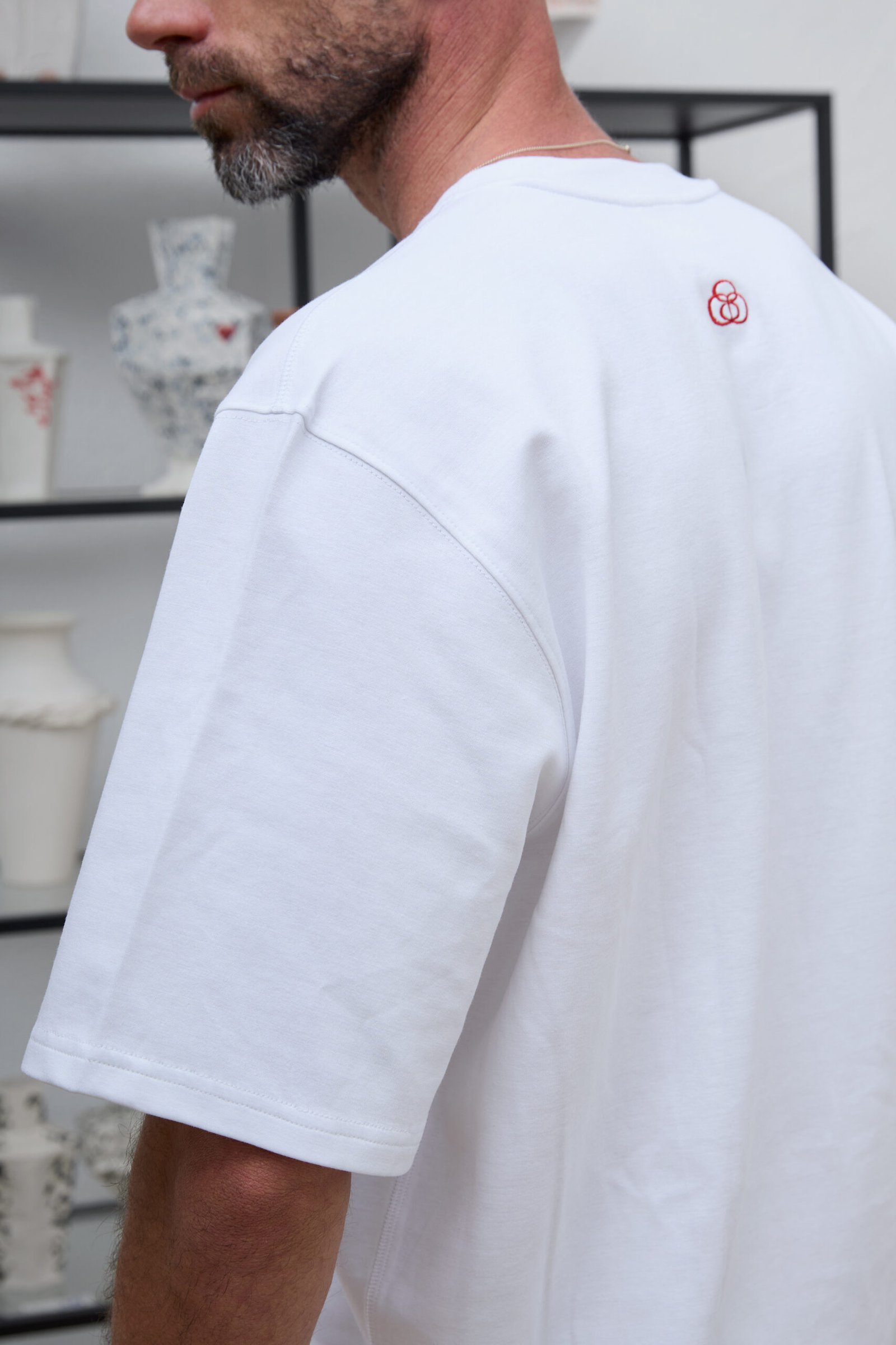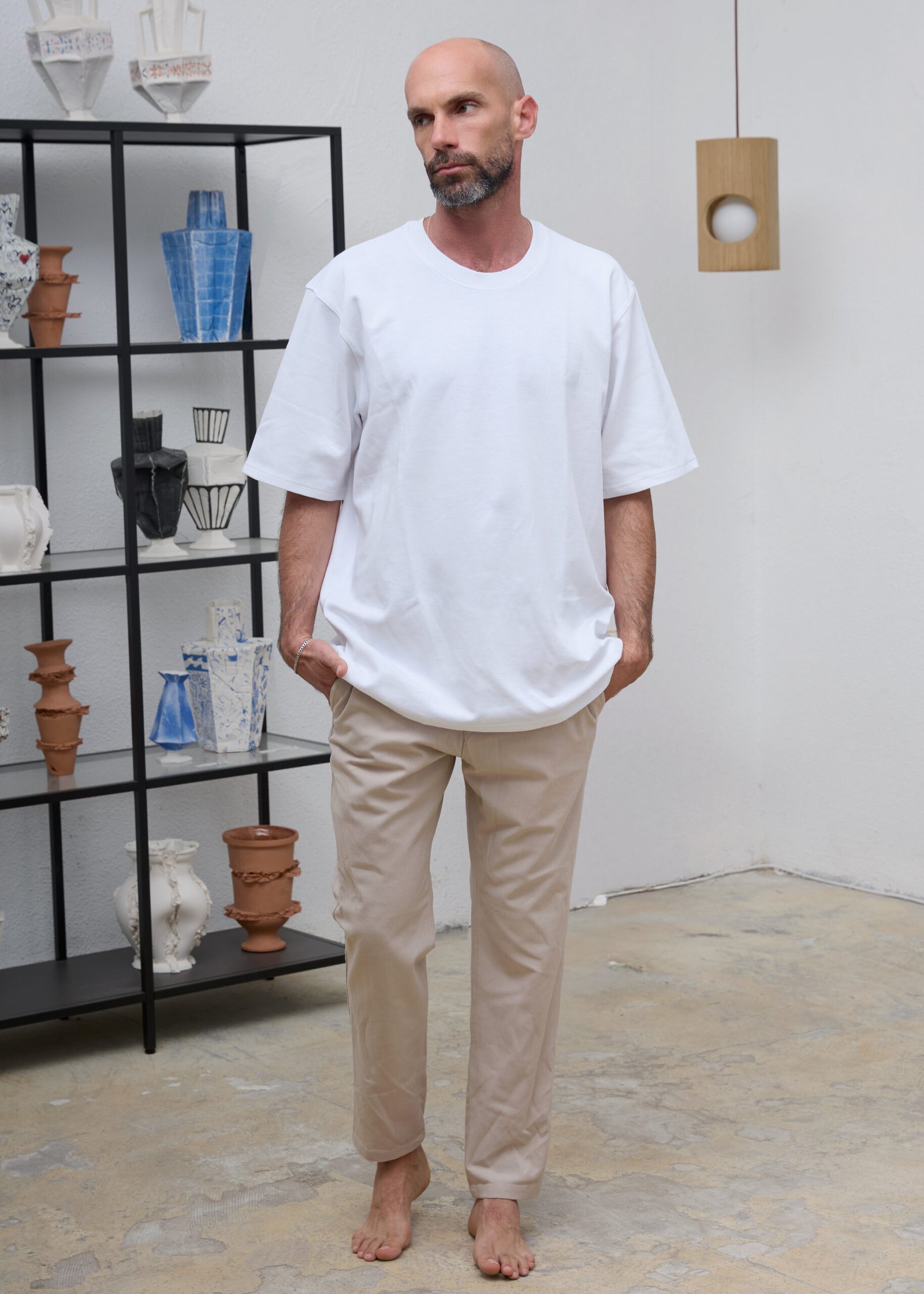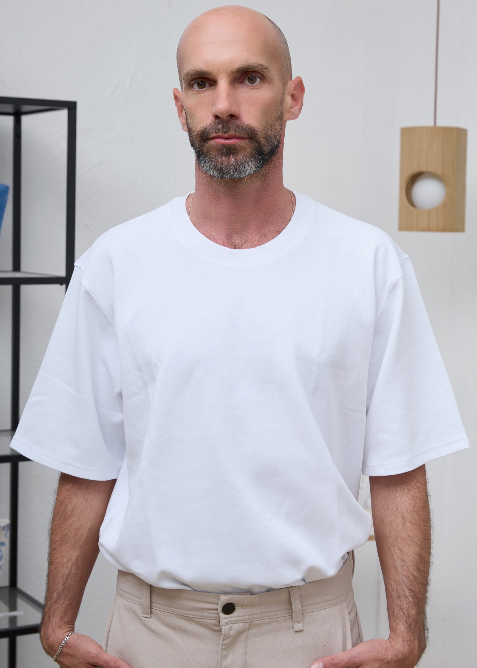 חולצת T רכה ונעימה , צבע לבן, משאירה מרווח בין הגוף לבגד.