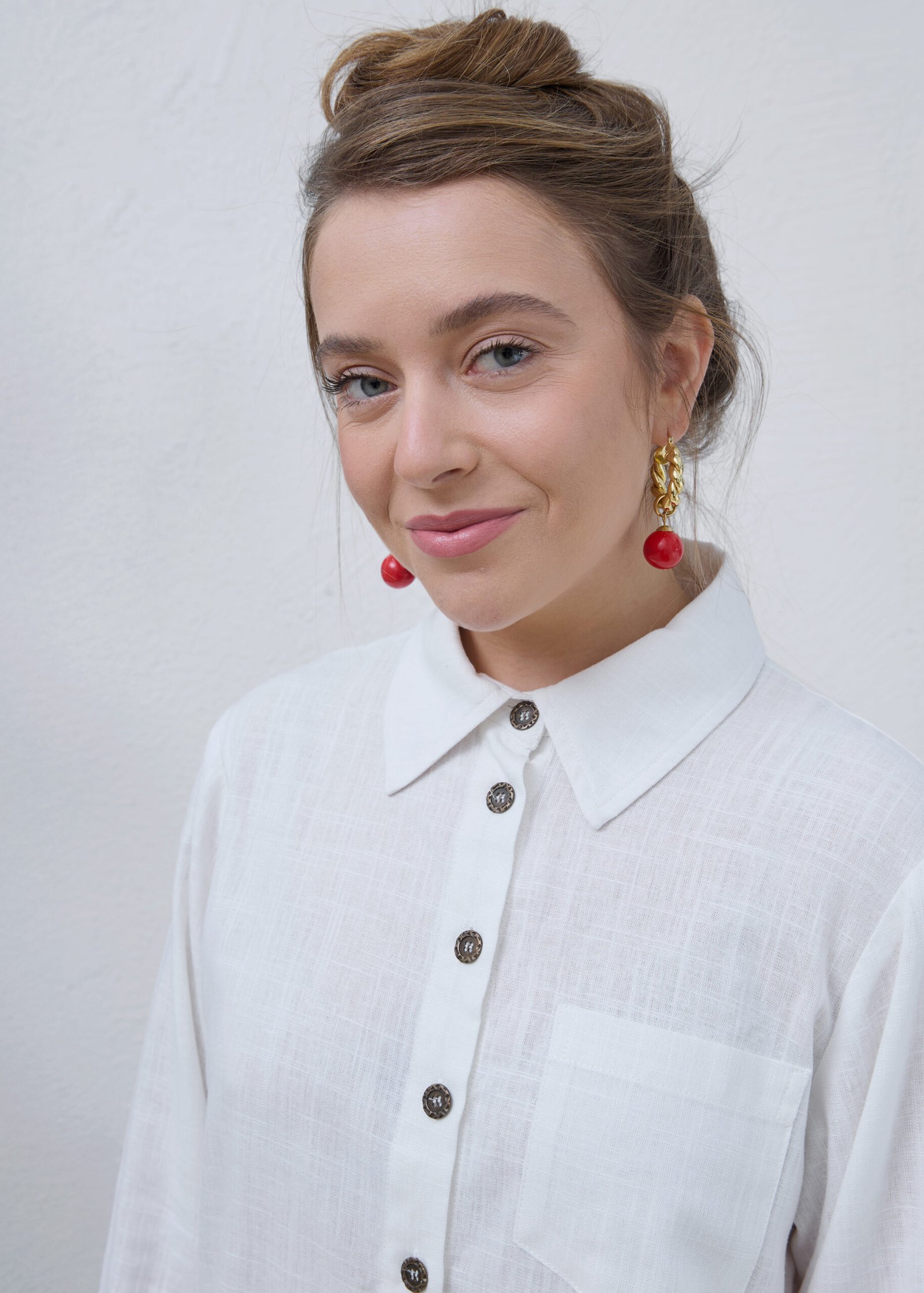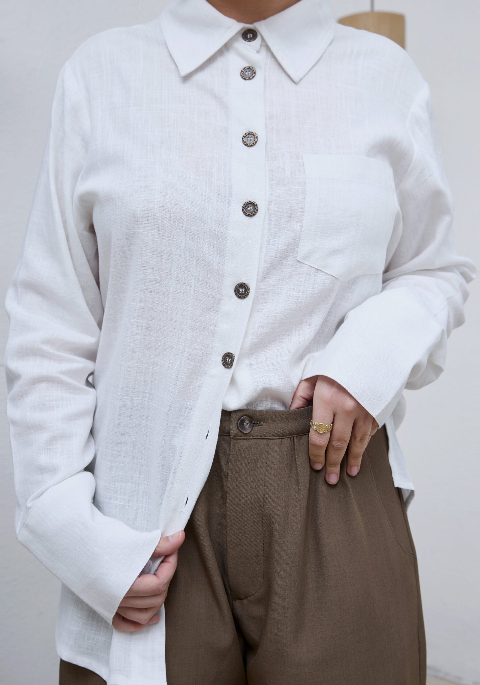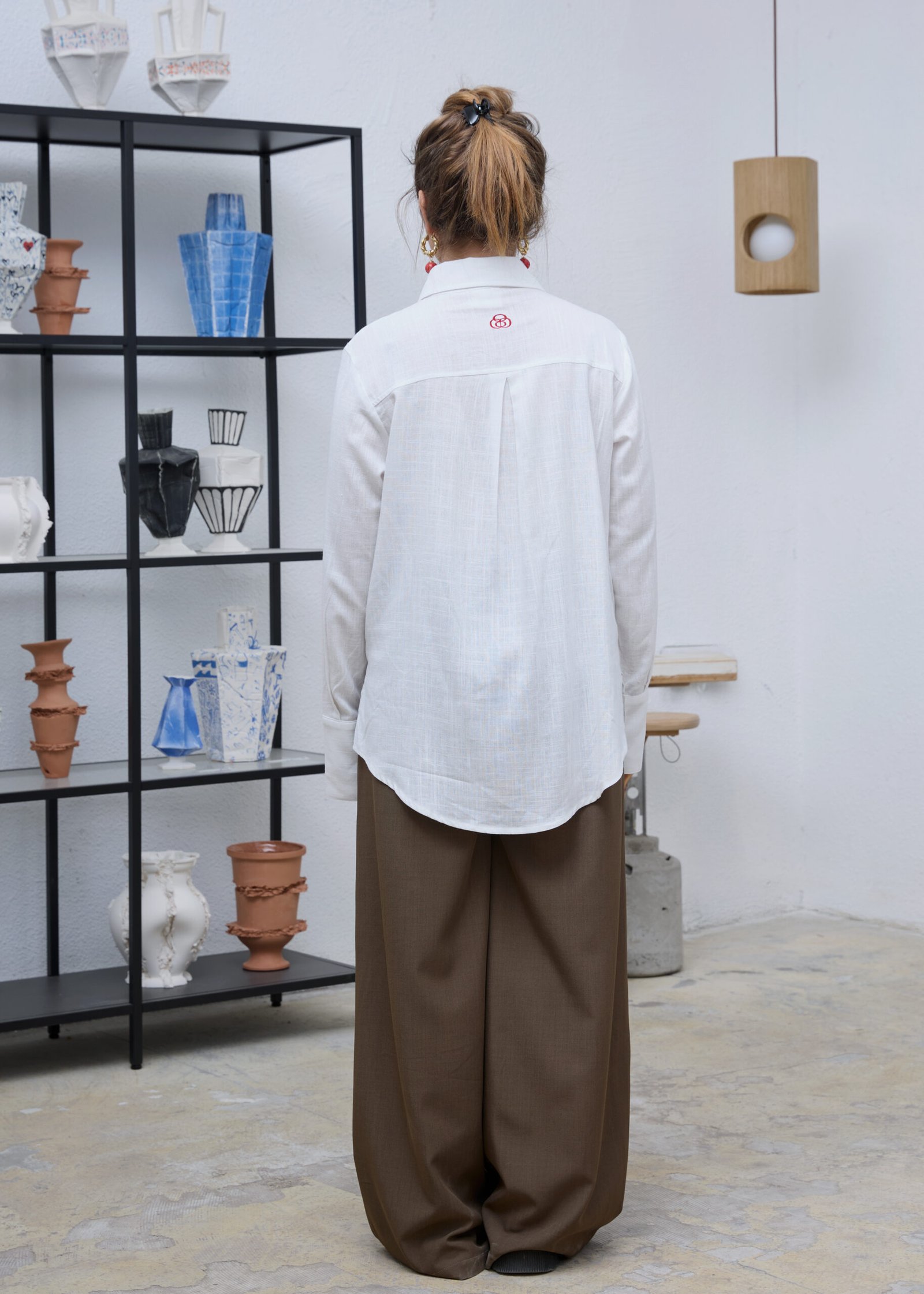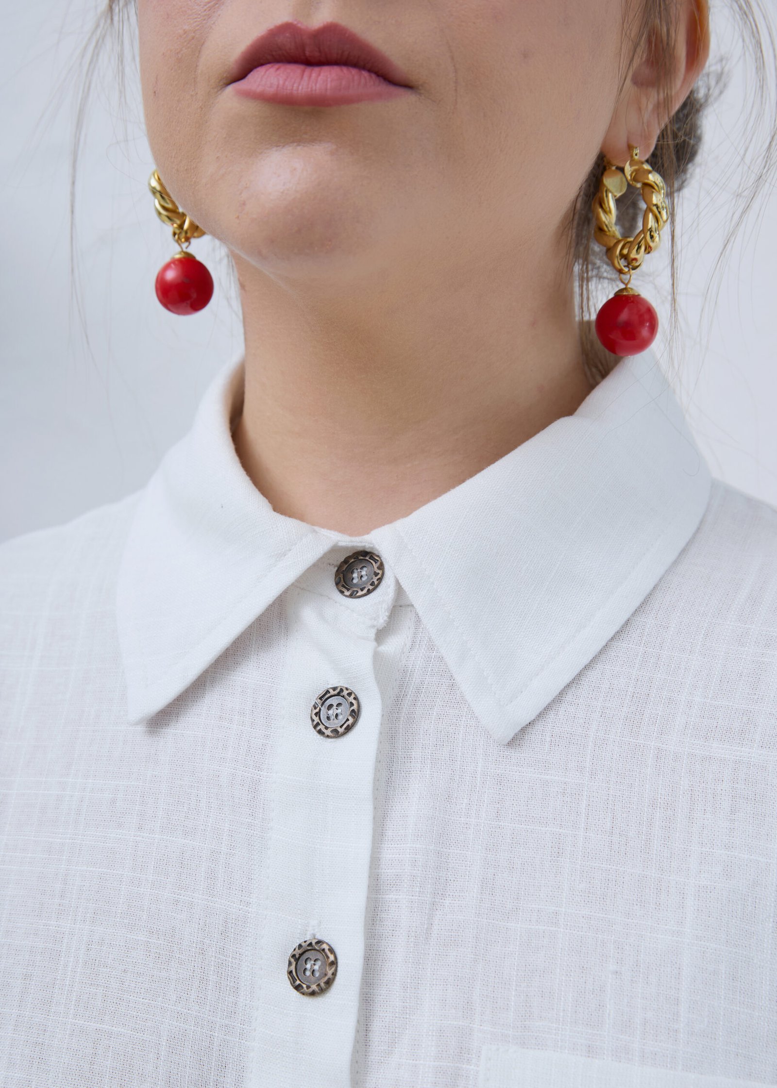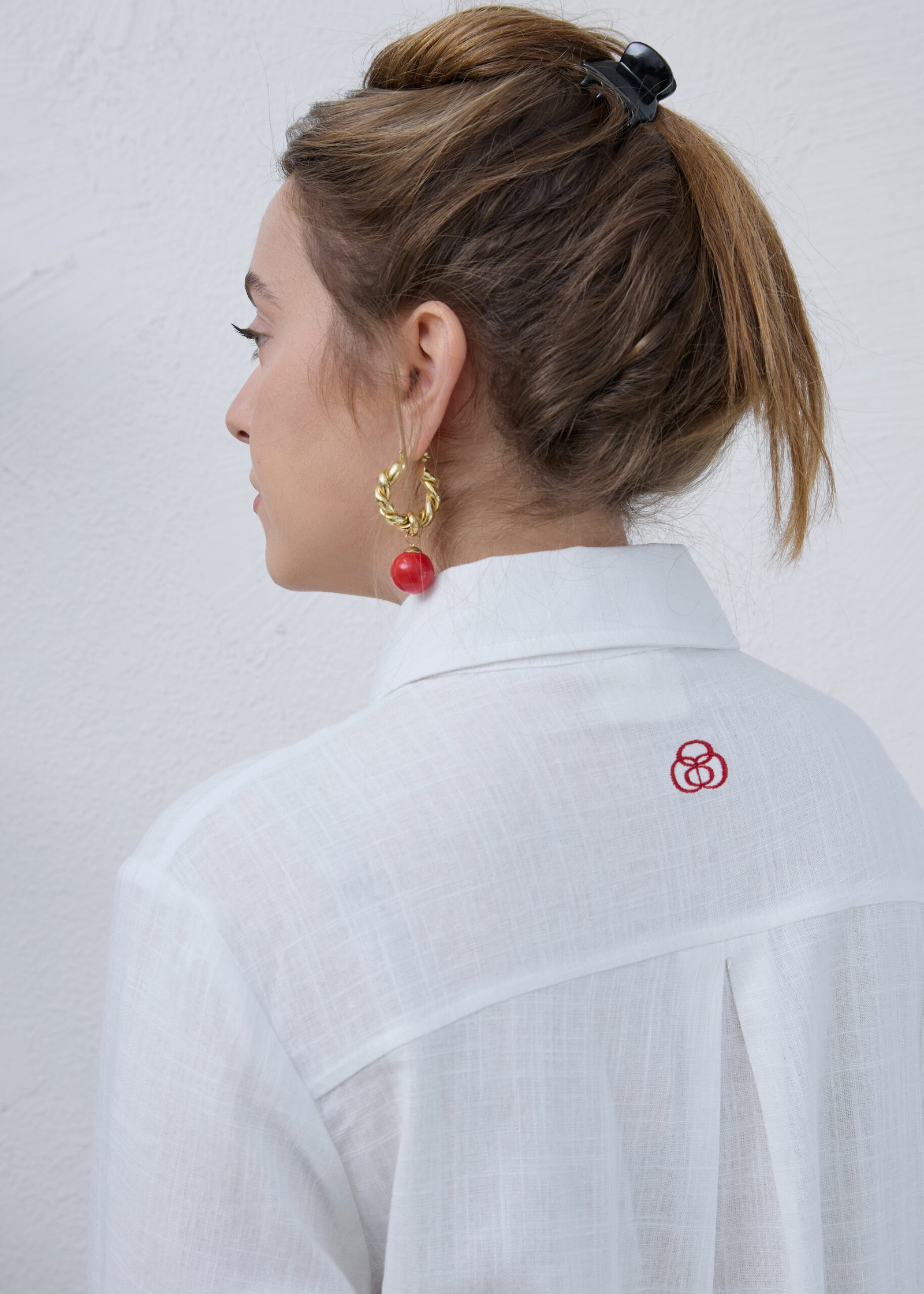 חולצה מכופתרת בצבע לבן עם שרוולים ארוכים עשויה מבד קליל. צווארון קלאסי. כפתורים בצבע כסוף, גזרה קלאסית עם לוגו רקום בצבע אדום בגב החולצה